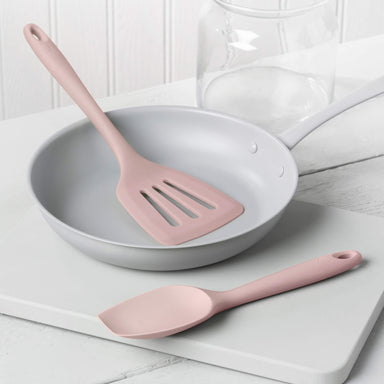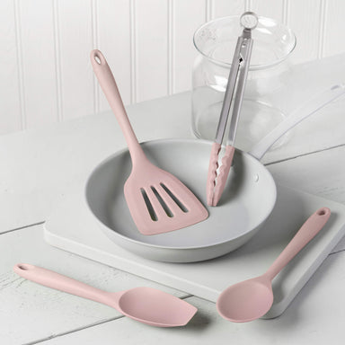 An essential kitchen tool set featuring four Zeal classics; our unique Zeal flat ended silicone spoon, traditional style turner, classic cooks spoo...