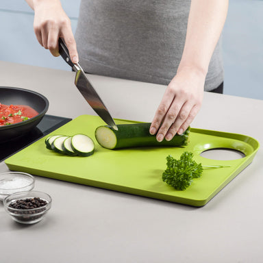 A super useful chopping board. Cut, chop, slice and transfer foods direct to the pan with our Zeal Straight to pan™ ultra slim cutting board. Desi...