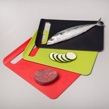 A great set of super slim chopping boards.  Cut, chop, slice and transfer foods direct to the pan with our Zeal Straight to pan™ ultra slim cutt...
