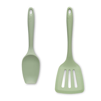 An essential kitchen tool set featuring four Zeal classics; our unique Zeal flat ended silicone spoon, traditional style turner, classic cooks spoo...